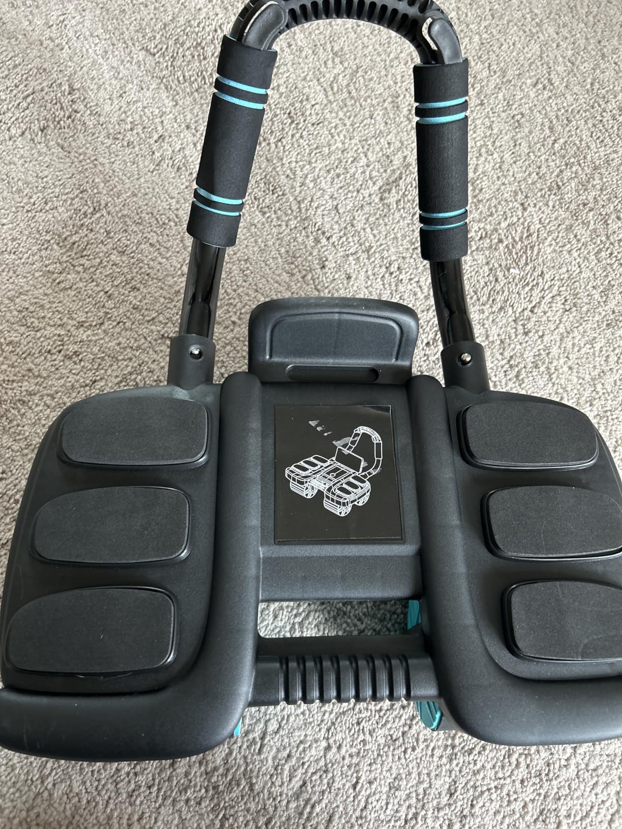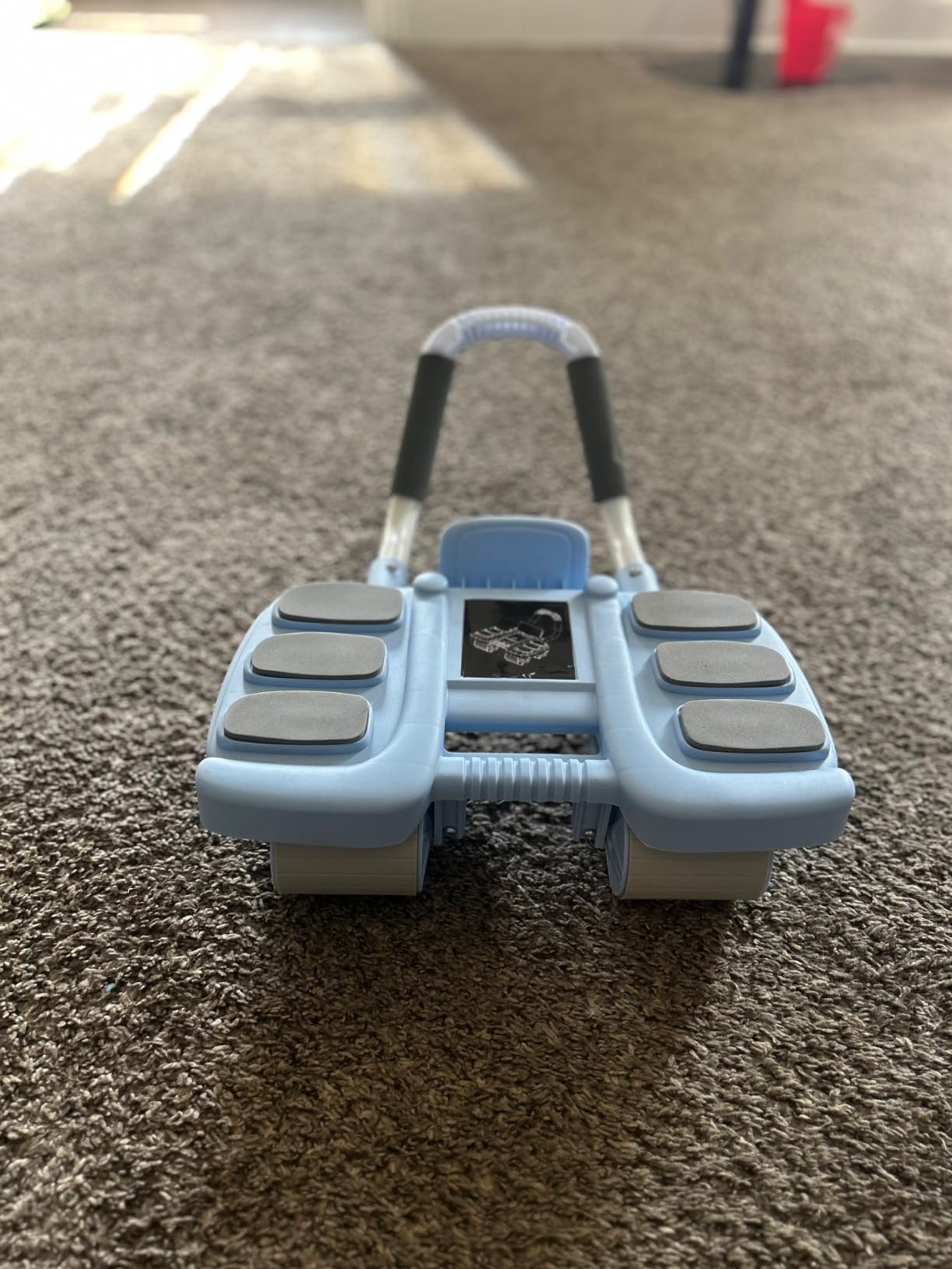 Love the design. I have tried the traditional wheel and peg roller but those hurt my shoulders and weak wrists, lol. This one helps support my wrists and shoulders while I work on my abs. Very simple assembly and functions as expected. Very smooth roll though it is assisted roll, it doesn't help too much, you are still using your core to retract to starting position which is crucial. I peeled the center sticker off mine, I don't like diagram stickers, đ I know how to use this. Would recommend if you need to focus on abs!