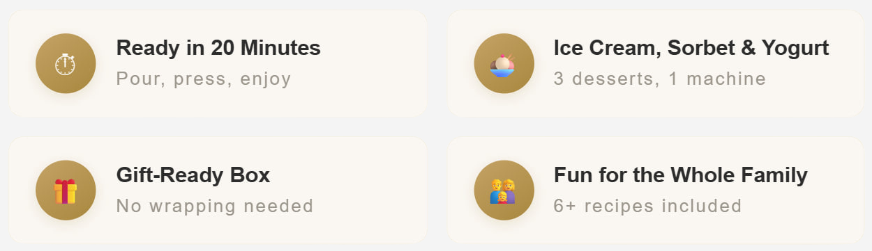 No pre-freezing, no complicated setup. Just pure frozen joy in minutes β right on your countertop.