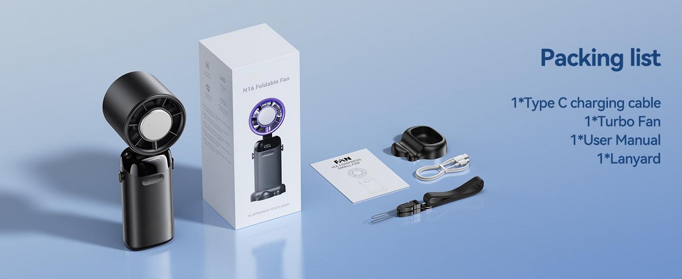 No hunting for cables. No missing pieces. No confusing setup. The Vaclio N16 arrives complete — turbo fan, Type-C charging cable, lanyard, and user manual all in the box. From unboxing to instant cool, it’s the kind of simplicity that just feels right.
