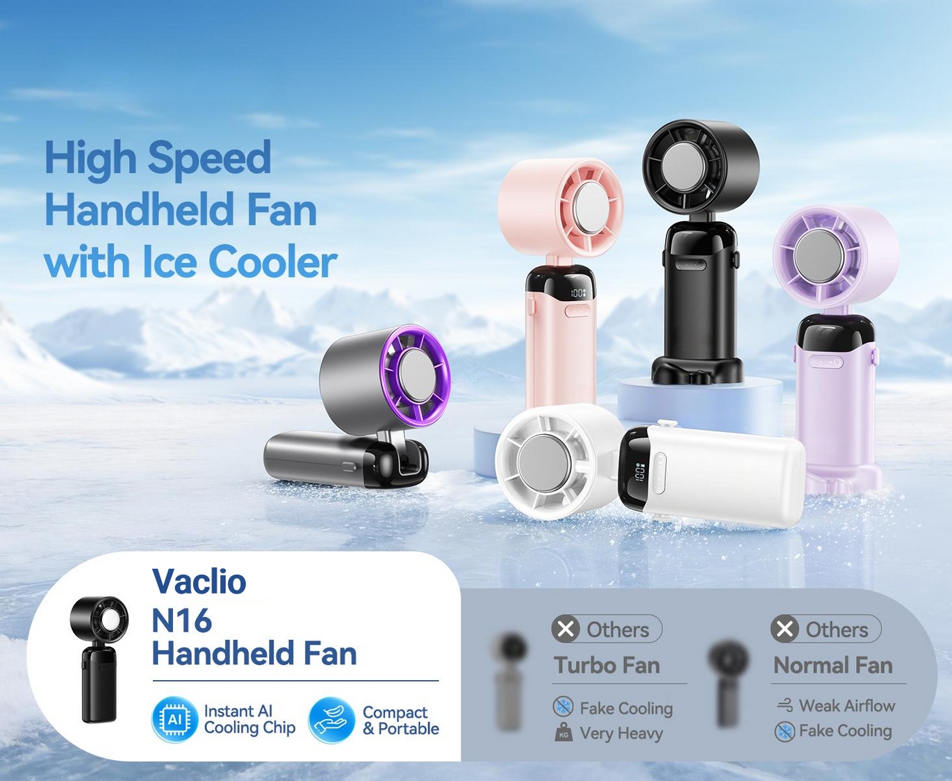 Most fans only push air around. The Vaclio N16 combines a 21,000 RPM turbo fan with an AI cooling chip in one intelligent system — scaling from gentle breeze to full icy blast across 200 speeds. Backed by a 3000mAh battery, it keeps you cool for hours without breaking a sweat.